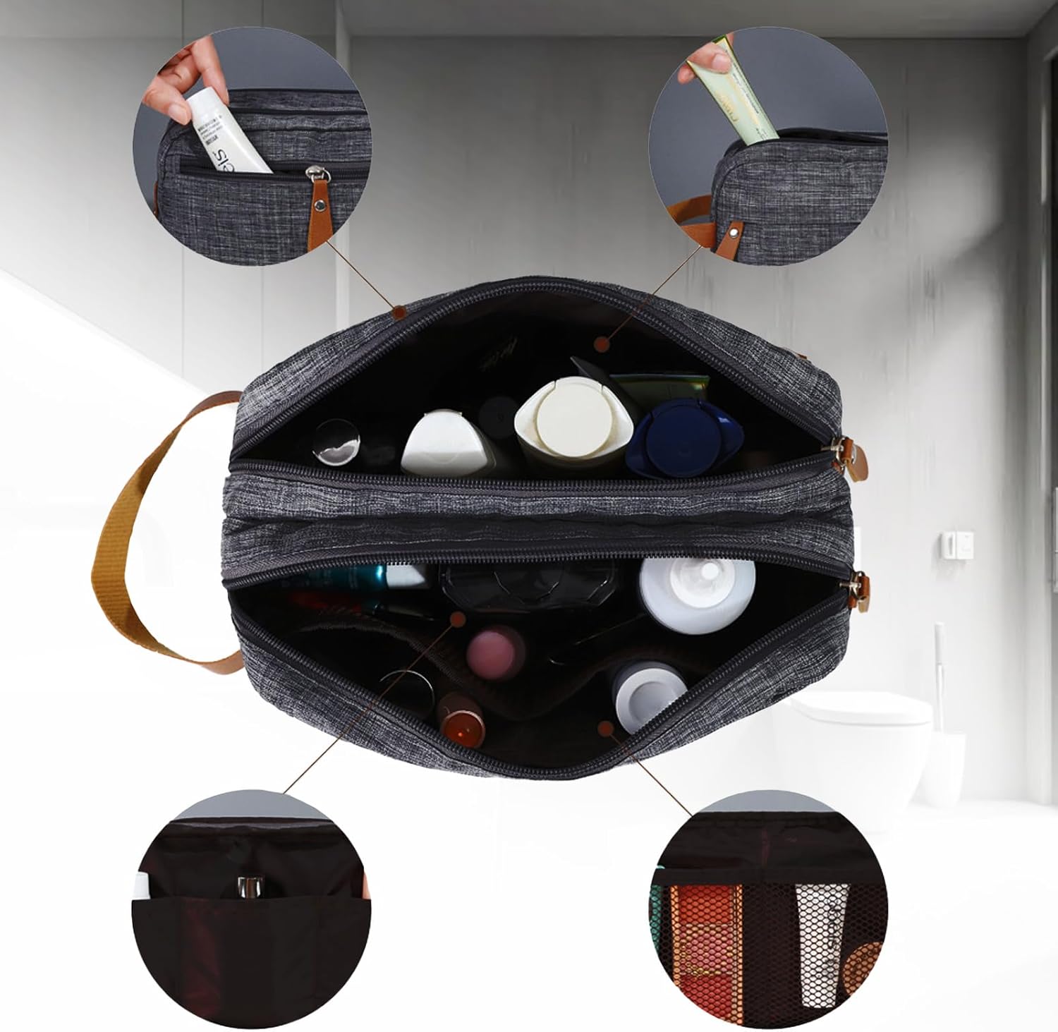 Grand espace de rangement : compartiment principal spacieux pour accueillir facilement vos produits de soin, rasoirs, brosses et accessoires.